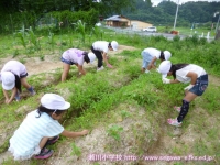 サツマイモの苗を植えた畑が,雑草でいっぱいになっていました。子どもたちは,サツマイモが成長するように,一生懸命畑の草むしりを行いました。大きなサツマイモがとれることを,今から楽しみにしています。