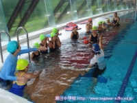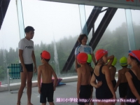 7月18日(金)全校遠足を行いました。1・2・3年生はラビスパ裏磐梯へ行って水泳と水遊びを楽しみました。2名のインストラクターの先生に「よろしくお願いします」とあいさつした後、泳力により2班に分かれて、さっそく練習に入りました。