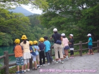 帰路は毘沙門沼に寄り、遊歩道を散策しました。子どもたちはハートマークの鯉に興味津々で