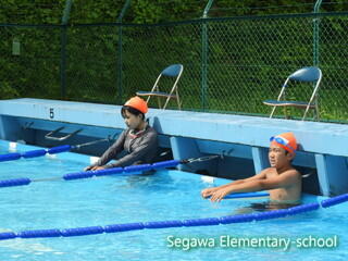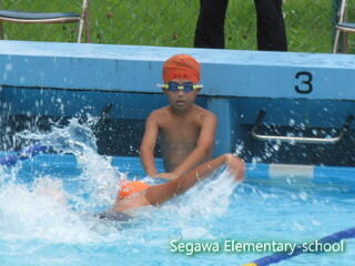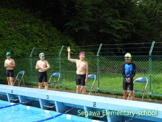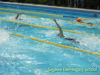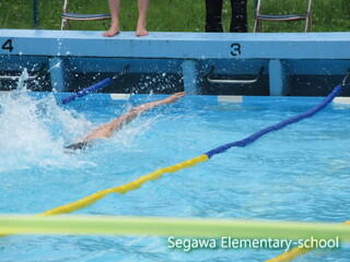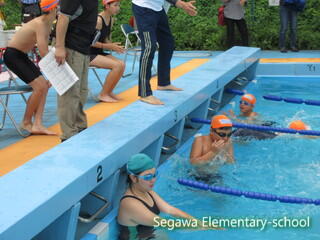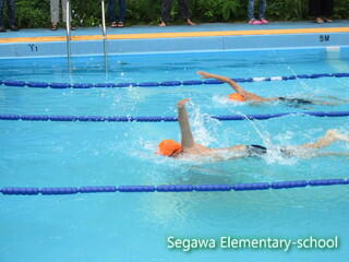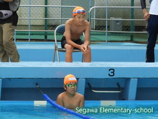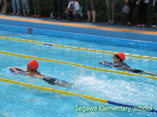 学年ブロックごとに区切り、感染対策を行いました。予想より多くの参観者にお出でいただきました。声を出しての応援は控えていただきましたが、子ども達は、ご家族の思いは十分に感じていたようです。それぞれのブロックで懸命な泳ぎを見せてくれました。