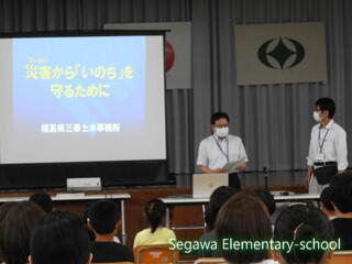2022年7月20日 08時10分授業参観後、子どもと保護者が一緒に「防災教室」を開催しました。