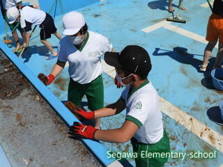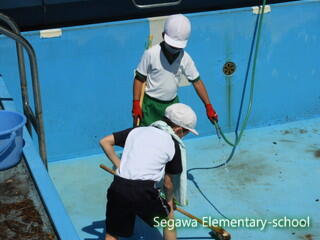 今年は、水泳学習を行っている美山小のプール清掃を3校合同で行うことにしました。