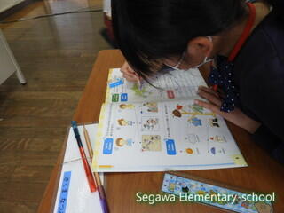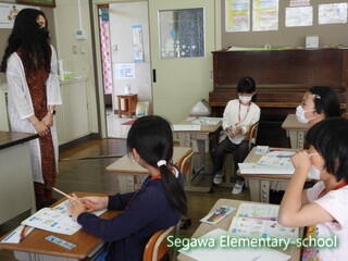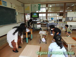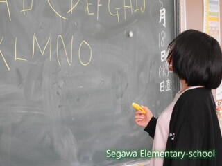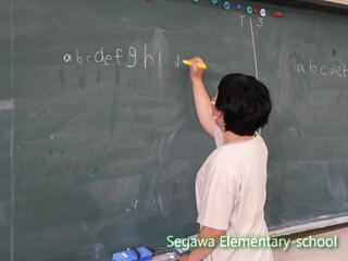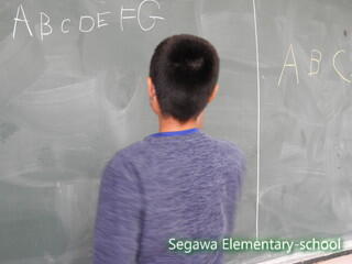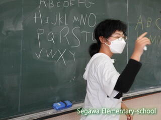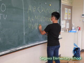 花見などについて紹介しました。他にも、アルファベットを書く学習に取り組みました。チームに分かれて、どんどん書いていきました。話したり、聴いたり、書いたりと、英語に親しんでいました。