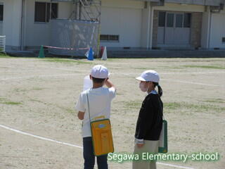 2022年5月24日 10時59分理科学習で4年生が校庭に出てきました。