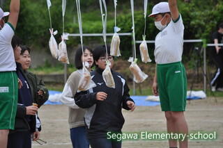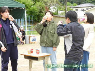 中学生の種目は、ジュース一気飲み?!とパン食い競争です。