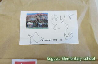 今回の一般向けの宝袋には、全てに子ども達の地域の皆様に向けた感謝のメッセージが貼付されています。
