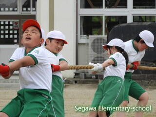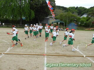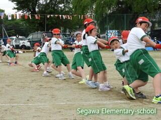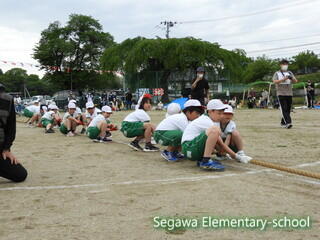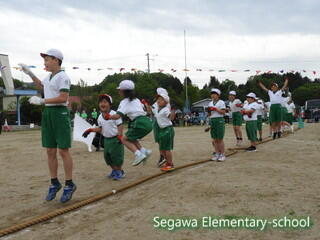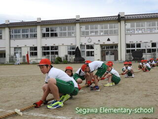 運動会スローガン「最後の運動会、力いっぱいがんばろう!」を具現する種目「紅白綱引き」です。