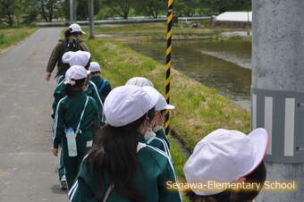 2022年5月12日 13時30分来週田植えをさせていただく面川さんの田んぼには、「レンゲ」が育っています。田起こしの際には、緑肥としてすき込まれるものです。面川さんから、子ども達にレンゲ摘みのご案内をいただき、早速出かけました。
