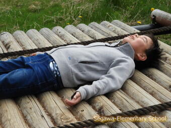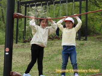 児童公園は、遊具の芝生に薬剤散布中とのことでアスレチックを中心に楽しみました。