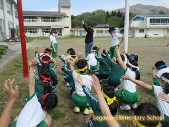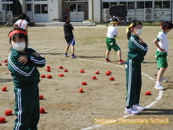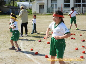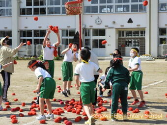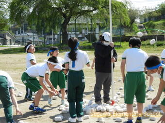 全校での玉入れは、あのダンスがついています。1年生も6年生もかわいらしく踊ってくれるのが可愛いですよ!