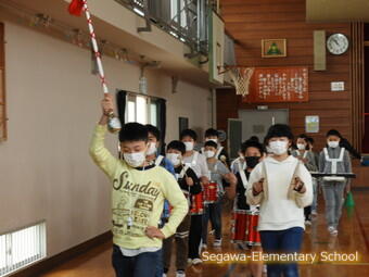 2022年5月4日 08時15分雨上がりの午前中に体育館で鼓笛練習を始めました。