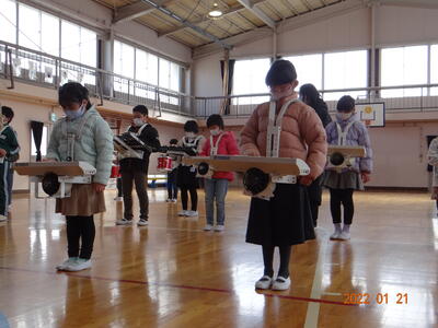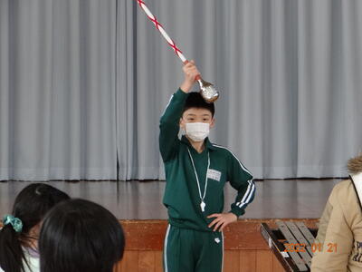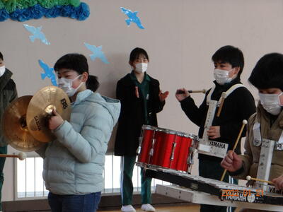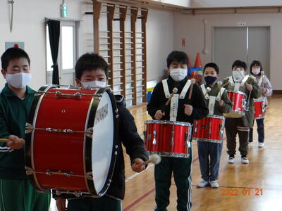 1月21日(金)昼休み、鼓笛練習をしました。2月の鼓笛引継ぎに向け、パートごとの練習はしていますが、今日は、5年生の新指揮者のもと、全体練習となりました。6年生も、見守ってくれました。