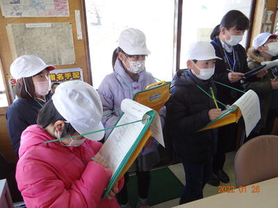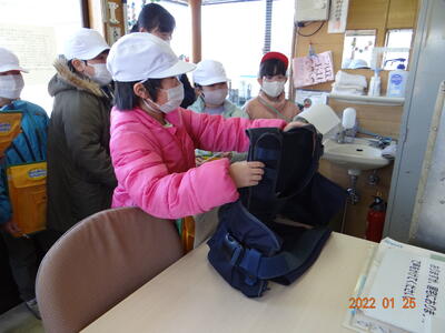 2022年1月25日 12時39分 1月25日(火)、3年生が、瀬川駐在所さんへ見学学習に行きました。中に入らせていただき、駐在さんから説明を受けました。身に付けているものを見せていただいたりもしました。