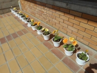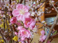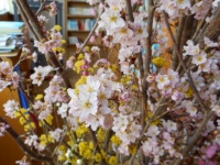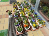 入学式の日に満開となるよう、涼しい校舎北側に置いておきましたが、ここ数日気温の高い日が続き、開花が進みました。