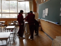 一年間お世話になった校舎への感謝の気持ちを込めて、校舎のワックスがけを行っています。