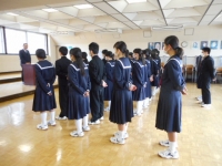 実際の式次第に沿って卒業生の入場から退場までを行い、礼法や式歌、卒業生の動きなどを確認しました。
