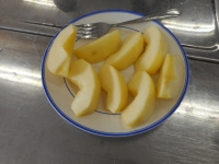 1校時の家庭科で、りんごの皮むきテストを行いました。