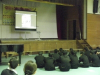 田村市、そして全国で発生しているインターネットに関するトラブルの現状について話を聞き、DVDを通して実際にあった事例をもとにスマートフォンの危険性について学びました。