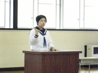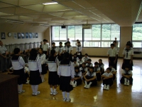写真は、今日の集会後に行われた校内発表の様子です。3人は夏休み中も登校し、特設合唱部と両立させながら一生懸命練習に励んできました。