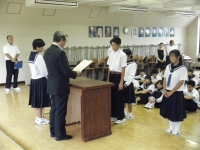 朝会では校長先生より「諸行無常」、「有り難い」という言葉についてお話しがありました。