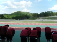 田村支部陸上大会に向けて、大会会場の市陸上競技場で練習を行いました。