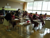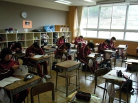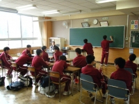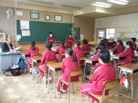 子どもたちは照れながらも、緊張した表情で授業に臨んでいました。