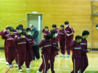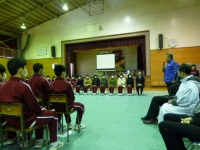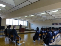 校長先生は、「大地震、津波、原発事故があったことを風化させることなく、明るい未来に向かって一歩一歩確かな足取りで前進していきましょう。そして、全国からのあたたかい支援のおかげで復興に向かっていることを忘れないでください。」と伝えてくださいました。どの生徒も真剣な表情で話を聞いていました。