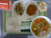 エネルギーは、797キロカロリーでした。今日は家庭での食事に果物を加えると栄養の菜ランスが良くなります。