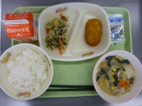 エネルギーは、871キロカロリーでした。今日は、家庭での食事にいも類を加えると栄養のバランスが良くなります。