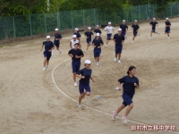 いよいよ夏休みに入り、梅雨明けが待ち遠しい季節ですが、移中「駅伝部」は、朝の涼しい内に練習をしています。熱中症などにならないよう、こまめに水分をとりながら、毎日一生懸命練習しています。9月の大会では、その頑張りをお見せできると思いますので、応援をよろしくお願いします。