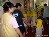 保育所や児童館で、小さな子ども達の世話をしたり、遊び相手になったりする生徒達や、ディサービスセンターで、お年寄りの介護のお手伝いをしたり、一緒になってレクリェーションゲームを楽しんだりする生徒もいます。
