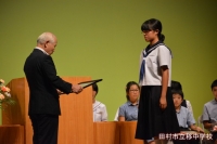 8月2日(土)、田村市文化センターにおいて「田村市少年の主張大会」が開かれました。小学校、中学校の各代表13名が参加しました。本校からは、3年の石井さんが参加し、自分の将来の夢について堂々と発表し、優良賞をいただきました。どの代表の人も立派な主張を発表し、優劣つけがたい、とても素晴らしい発表会でした。毎年、この時期に行われていますので、来年はぜひ会場にお出でいただき、感動を味わうとともに、発表者への応援をしていただければ幸いです。