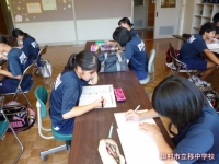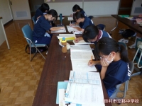移中では、夏休み中毎日、駅伝の練習や合唱の練習、それに部活動の練習をしています。合唱の練習は午後に行っていますが、部活動を引退した3年生は、午後の練習まで、学校の中で自主学習に取り組んでいます。夏休みでも、朝は駅伝、午前中は自主学習、そして午後は合唱の練習と時間を有効に使い、それぞれの活動に一生懸命取り組んでいます。3年生の皆さん! 本当にご苦労様です。