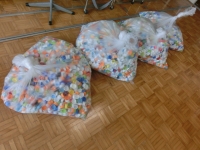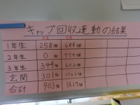 ペットボトルのキャップ860個で一人分のワクチンを送ることができます。5月の1ヶ月間では、約3800個回収することができました。今後も続けていくので、各家庭での回収等、ご協力お願いします。