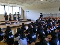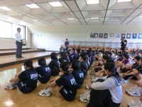 選手一人一人が、「悔いの残らない大会にしたい」「練習の成果を発揮したい」という大会への意気込みを話してくれました。また、各部のキャプテンからは、一緒に頑張ってこようという励ましの言葉がありました。移中の生徒たちが、大会で生き生きとした姿を見せてくれることを楽しみにしています。