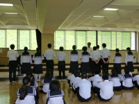 今日の朝会では、中体連の表彰と、学級役員の任命がありました。