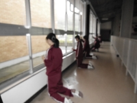 6月8日はPTAの奉仕作業がありました。朝早くからの実施、また雨に濡れながらの作業となりましたが多くの保護者の方に参加していただきました。子どもたちも、いつも手の届かない場所の清掃や、窓拭きを頑張りました。おかげで、通学路や学校の敷地、校舎内をより良い環境にすることができました。今日は、気持ちの良い環境で学習活動を行っています。みなさんご協力ありがとうございました。