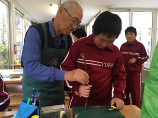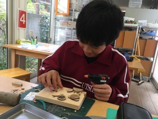 刃物を扱うときの注意事項を聞いてから、表札作りをしました。