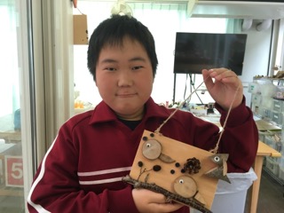 子どもたちの作品は、素材の形を生かした味のあるものがたくさんですね(`・ω・´)