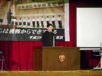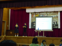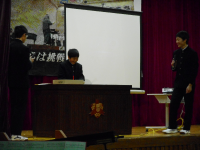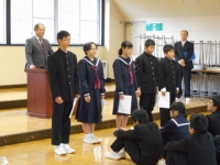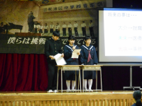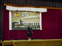 少年の主張大会、英語弁論大会に出場した生徒、そしてマンスフィールド研修に参加した石井歩さんより研修報告を行いました。