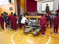 1年生はJICA訪問学習、2年生は職場体験学習、3年生は高校調べ学習の発表を行いました。