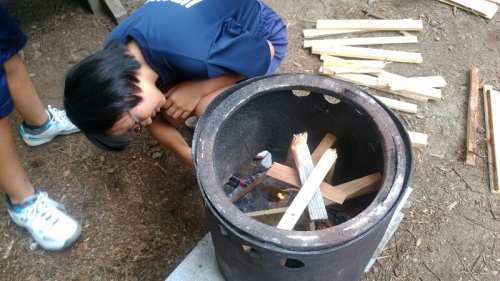 普段できない体験に悪戦苦闘しながらも、頑張ってかまどに火をおこしていました。