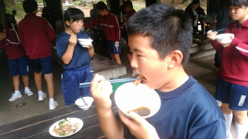 これから体育館を掃除して、野外炊飯へとうつります。刃物や火を扱うので、けがの無いよう十分に注意していきたいと思います。