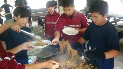焼き上がった野菜やお肉をみんな美味しそうにほおばっています!