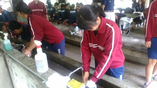 2017年9月20日 12時55分食べ終わったら後片付けです。