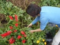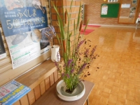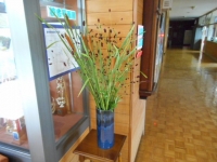 用務員の今泉さんが、玄関前にガマの穂と吾亦紅を飾ってくださいました。