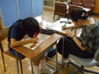 日本語のプリントを見ながら、同じ役割同士で班になり、どう話せばいいのか情報交換をします。その後、ペアで体調について会話をし、最後には全体発表を行いました。