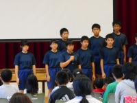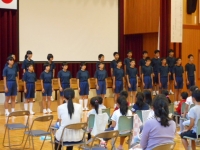 小学生は元気よく伸びやかな歌声、中学生は低音から高音までが見事に重なる歌声が体育館に響き渡りました。