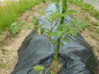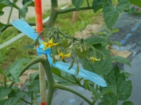 2年2組で栽培しているトマトが実をつけました。