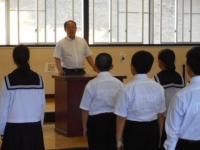 校長先生からは、「将来なりたい職業が決まっている生徒もまだ決まっていない生徒も、これからの生活の中でいろいろな職業が見えてくると思います。何でも良いので、自分の中に一つ目標を決めて学校生活を送ってみてください。そうすれば、いつもとは違った学校生活になると思います。」と言うお話がありました。